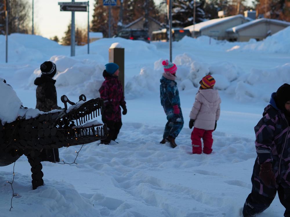Puuha oli niin mukavaa, että varmasti näemme linnan rakentuvan tulevanakin talvena Dino-patsaan viereen.